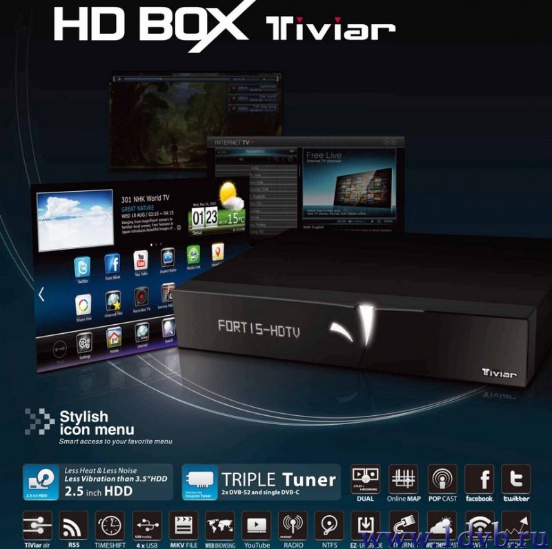 Спутниковый ресивер Tiviar Alpha Plus применяет для своего управления открытую систему Linux с графической оболочкой от компании Fortis. Над имиджами для приемника трудятся корейские программисты. В ресивере, кроме двух DVB-S2 спутниковых тюнеров и приёмника DVB-T2/C, что позволяет расширить возможности аппарата.Поддерживает разнообразные интернет сервисы, интернет тв. Можно смотреть один канал на телевизоре, а второй записывать на жесткий диск или просматривать на компьютере через stream поток. При этом для независимого доступа с двух спутниковых тюнеров к двум разным каналам на антенне потребуется использовать твин конвертор с двумя независимыми выходами. Имеется поддержка функции Dual HD PIP, которая поддерживает одновременный просмотр двух HD телеканалов на экране.